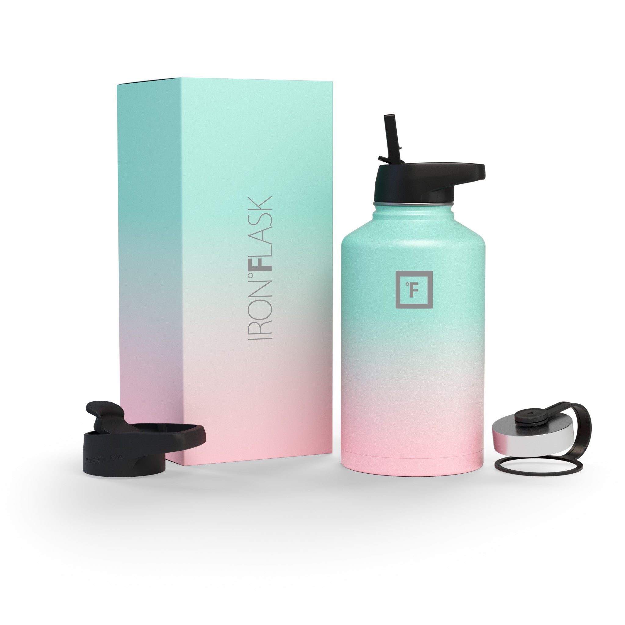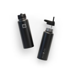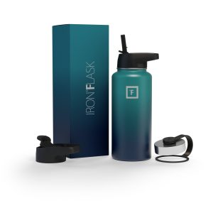 Sip your favorite beverage at the temperature the drink gods intended thanks to the double-wall vacuum insulation of the Iron Flask 40 oz Water Bottle With Straw Lid— 24 hours of icy coldness and 12 hours of piping hotness while staying sweat-proof. This bottle can stand up to roughhousing. but it’s not just another big. dumb water bottle. It features a wide mouth and a carabiner straw lid for quick filling and spill-proof sipping on the go. plus a flip lid and a stainless steel screw-on lid for more options.